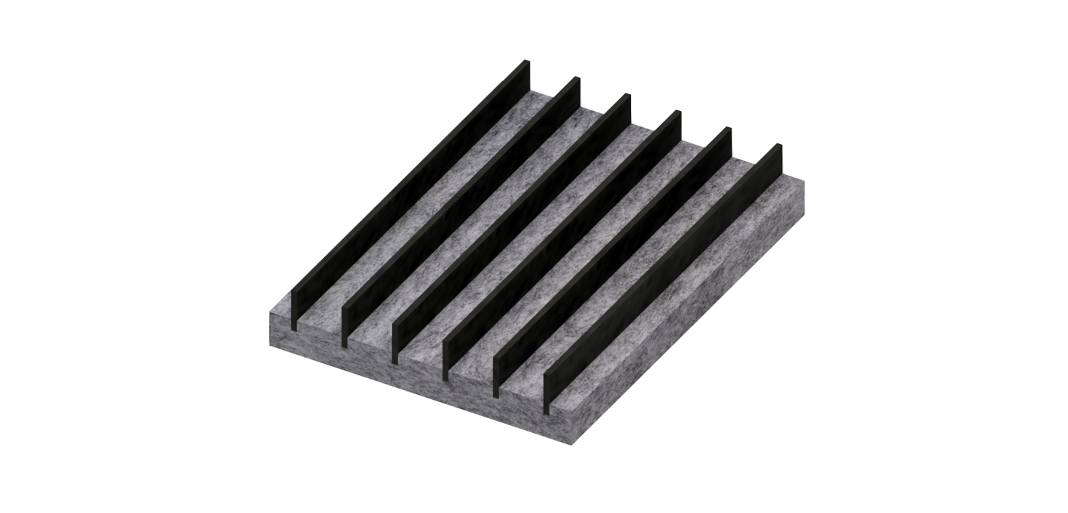 Das Lamellenpaneel ist mit 3 mm dünnen schwarzen MDF - Leisten und 18 mm dickem grauem Filz gefertigt. Diese Farbkombination schafft ein Stück Exklusivität in jedes Wohnambiente.