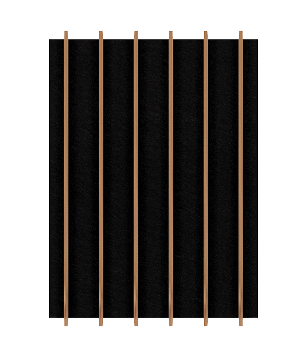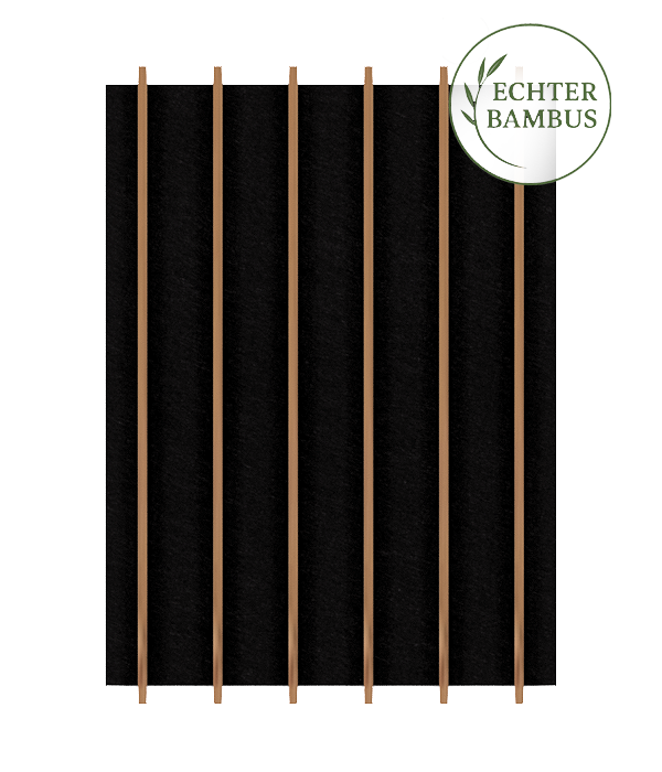 Das Lamellenpaneel ist mit 3 mm dünnen Bambusleisten und 18 mm dickem schwarzem Filz gefertigt. Diese Farbkombination schafft ein Stück einzigartiges in jedes Wohnambiente.